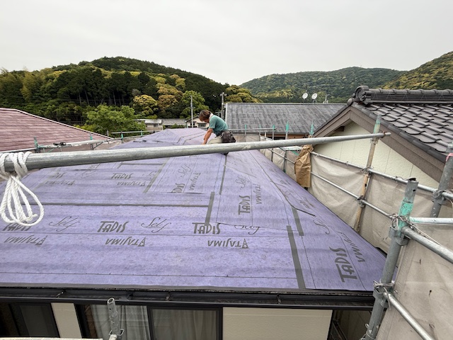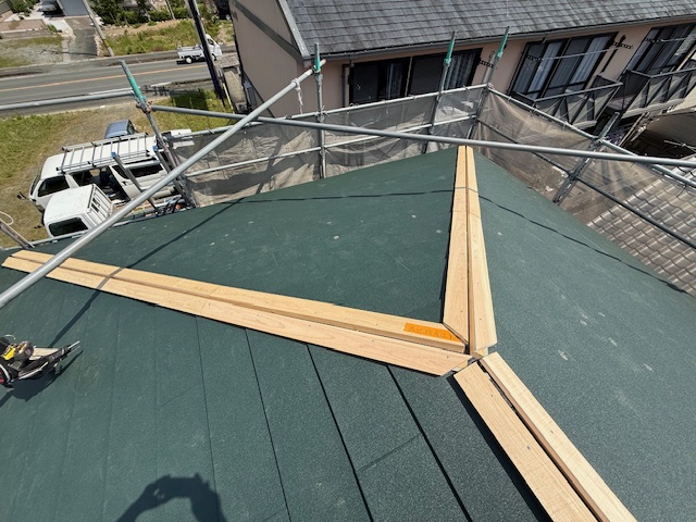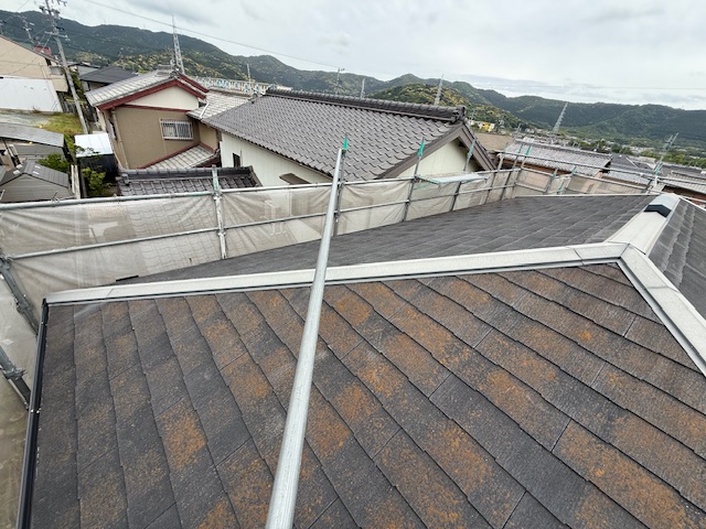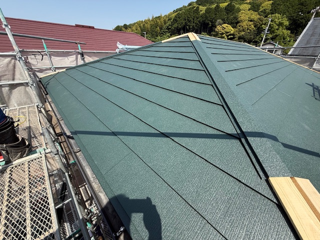 お客様の家の外壁塗替えと既設のカラーベスト屋根をアイジールーフのスーパーガルテクトという商品をカバー工法いたしました。カラーベストを塗り替えるより少し費用はアップいたしますが、軽量で納まりもよく雨漏りもしにくいスーパーガルテクトという商品のカバー工法をお勧めいたします。